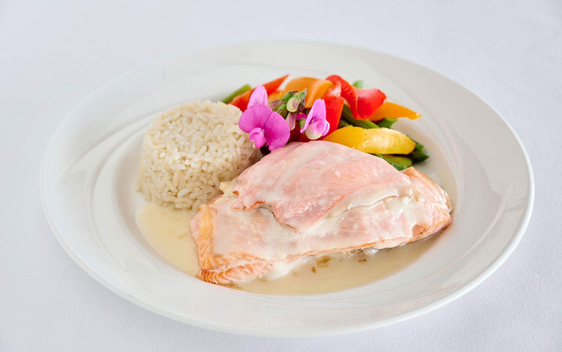 Below are samples of the types of menus and items we feature daily. We use only fresh local ingredients, some of which are from our very own garden! For dinner, there are usually 4-5 dinner entrée choices with one vegetarian choice each day. Luncheon choices are offered either from a sit-down menu in our dining room or a lakeside barbecue. Breakfast is a buffet featuring a variety of hot and cold items daily.