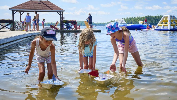 At Severn Lodge, the sandy beach is the perfect place for carefree lakeside play and family fun. Set along the shores of Gloucester Pool, the beach invites guests of all ages to dig their toes into the sand, build towering sandcastles, jump into the refreshing lake, or enjoy friendly games right by the water. Kids can join organized activities and beachside competitions while parents relax nearby, soaking in the sunshine and scenic Muskoka views. With plenty of space to play, laugh, and unwind, the beach becomes a lively hub where simple moments—splashing in the shallows, playing in the sand, or gathering with family—turn into lasting summer memories.